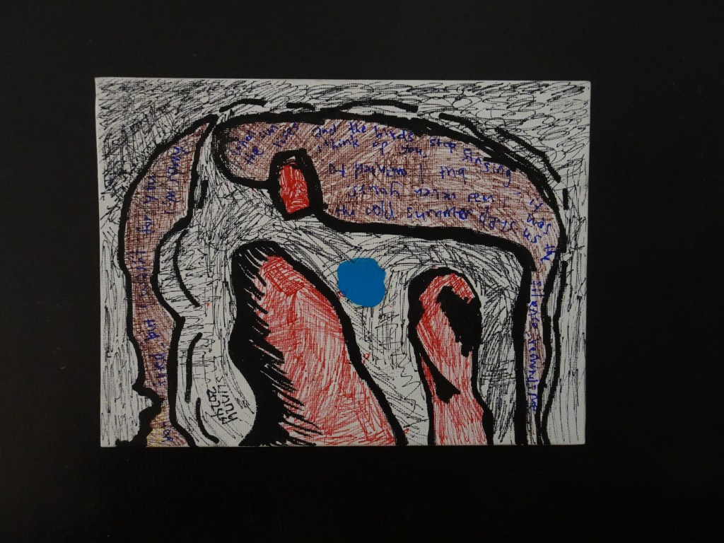 Ridiom by Xinde Ren (canvas + paper, 12 x 16 inch), responding to Ariadne’s Labryinth’s Live set