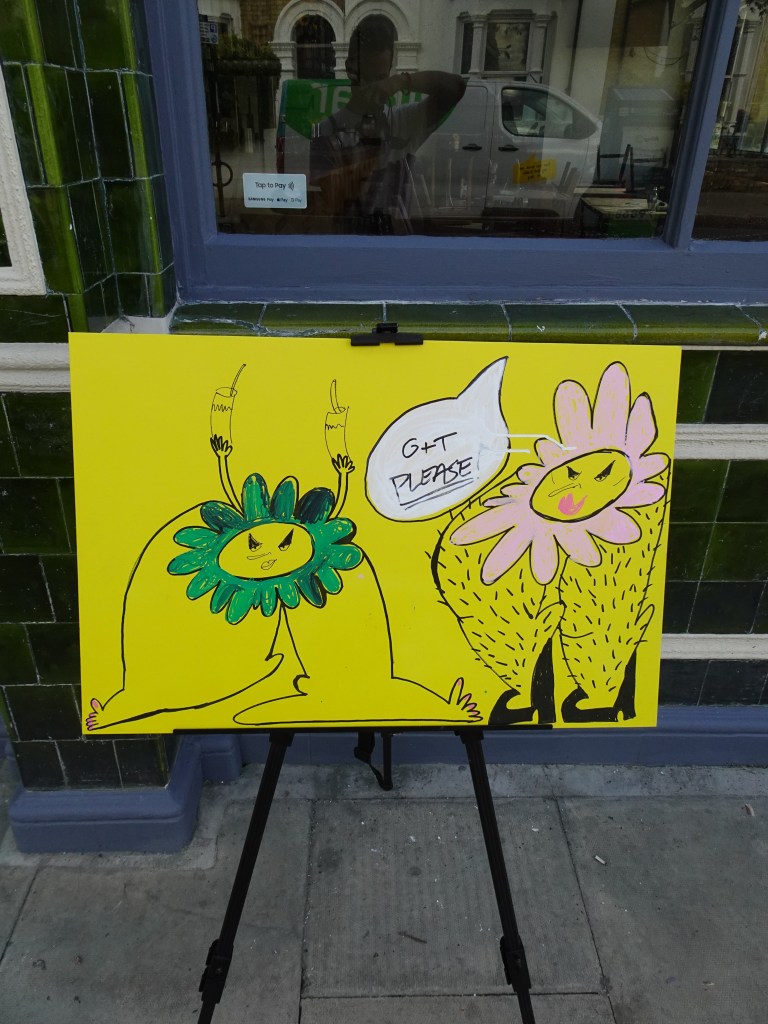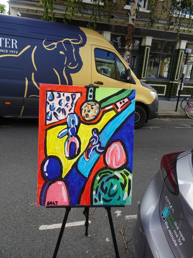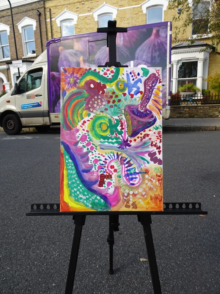 When asked what drink Flowa Friends fancied, they asked for a Gin & Tonic, whilst Rosy Ross began her set with an all time favourite; ‘Disco to Disco’ by Whirlpool Productions. Reflecting the joyous scenes of the end of the day, Flowa Friends went straight on to make a second artwork, finishing it off in time with the end of Rosy’s closing set and the wider event itself, with ‘Dance’ by Fox The Fox.