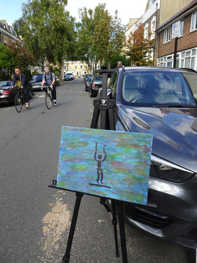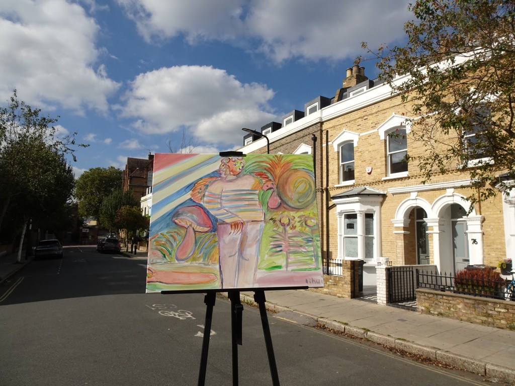 I was seeing the dancers and they were wearing a lot of colourful things too, hence the background looking like that, and I decided to draw a dancing person with their hands in the air because of the really pure feeling of euphoria and being at peace, and freedom, the feeling of being free, that’s what I wanted to show in this piece. It’s not the best thing I’ve created in the world, but I’m really proud of it because I really got out of my comfort zone, and it was such a lovely day, it felt very comfortable and homely, and I wanted to reflect that in the image.’ – Yungirie