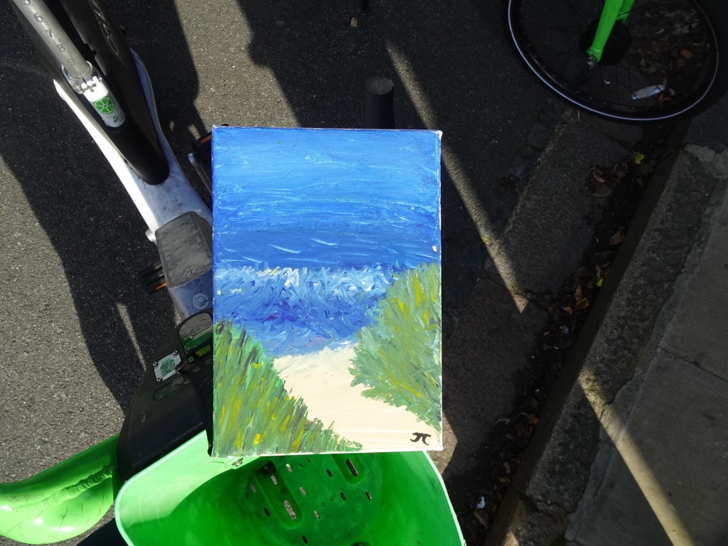 EartH chair by anon and Bugs by Bam Bam, both canvas board, 12 x 8.25”